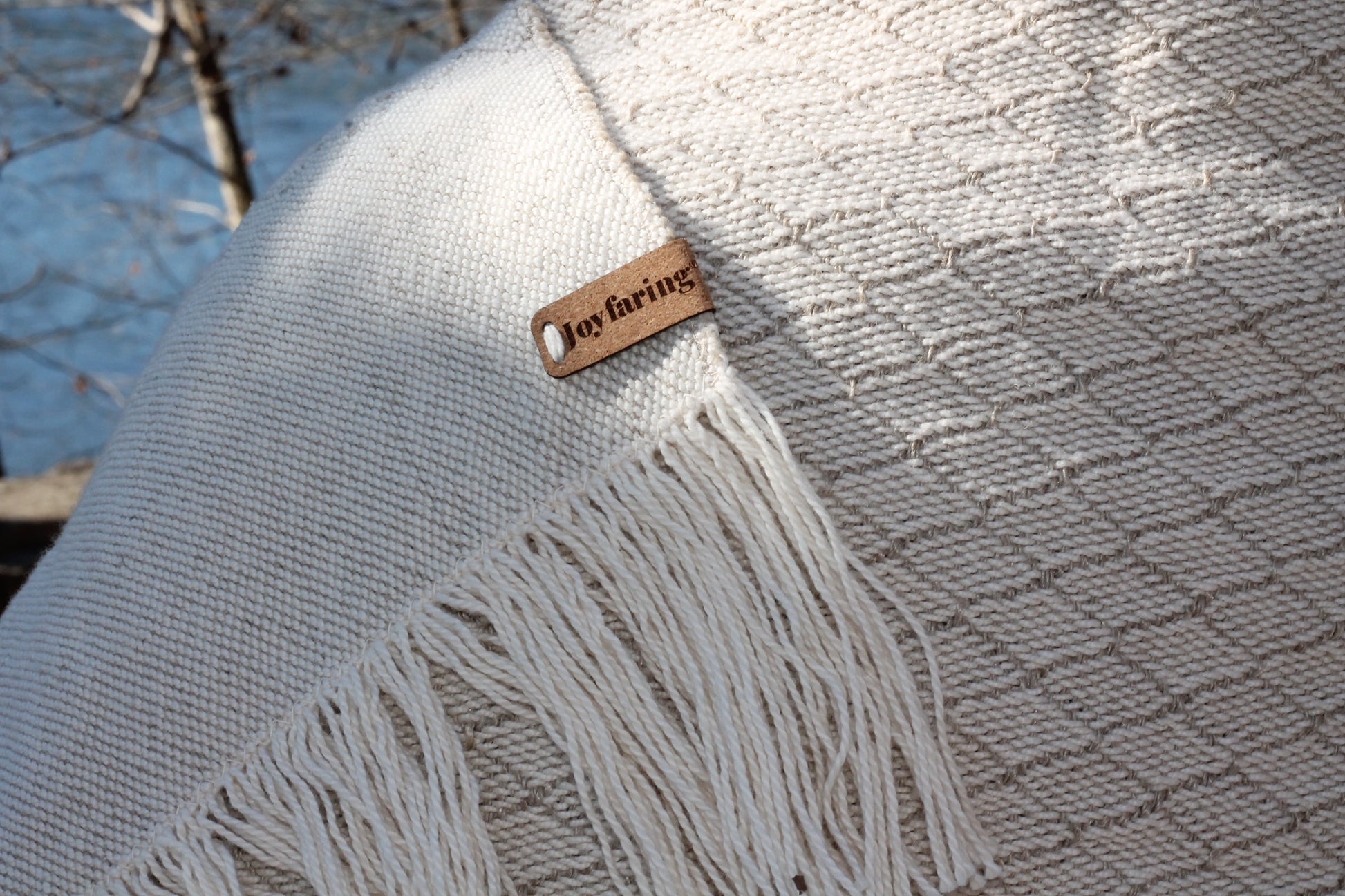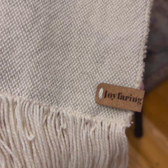 The Haven Shawl is handwoven to offer steadiness, warmth, and a sense of being well held. Made of soft, drapey, undyed organic U.S. cotton and undyed rescued European linen. This shawl carries the Lattice Motif - an interlocking pattern of diamond shapes that creates strength through relationship. Each element meets the next, forming a structure that is resilient, balanced, and quietly supportive.